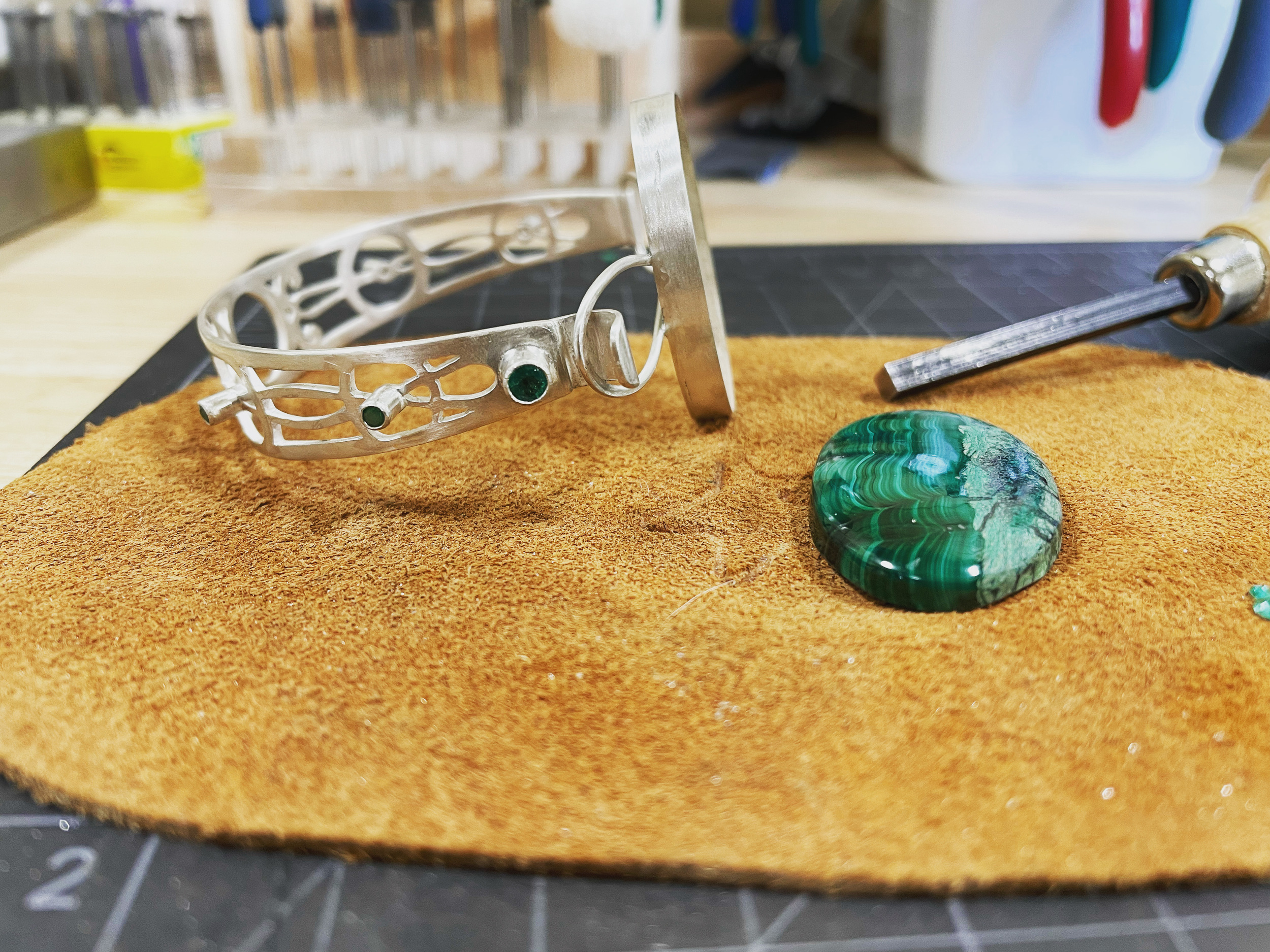 Malachite is a powerful stone, a gemstone of great transformative healing. Emerald is the stone of kings, bringing wisdom, love and healing and opening the heart chakra. An Emerald and Malachite combination is truly auspicious in Love, Luck, Career and business.