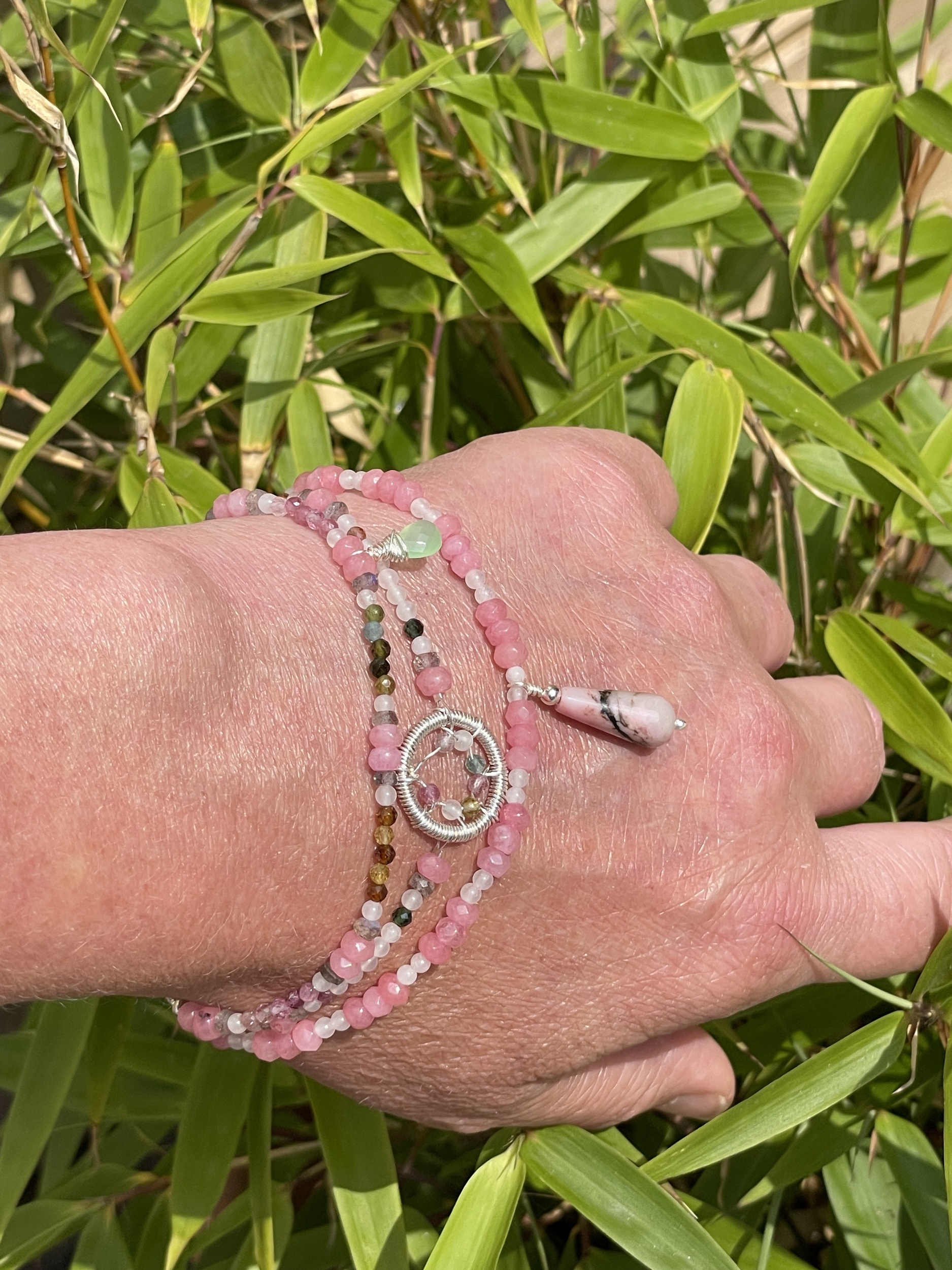 Rhodonite, Quartz & 925 Sterling Silver, 'Theros-goddess of summer' Natural Gemstone Stacking Bracelet.