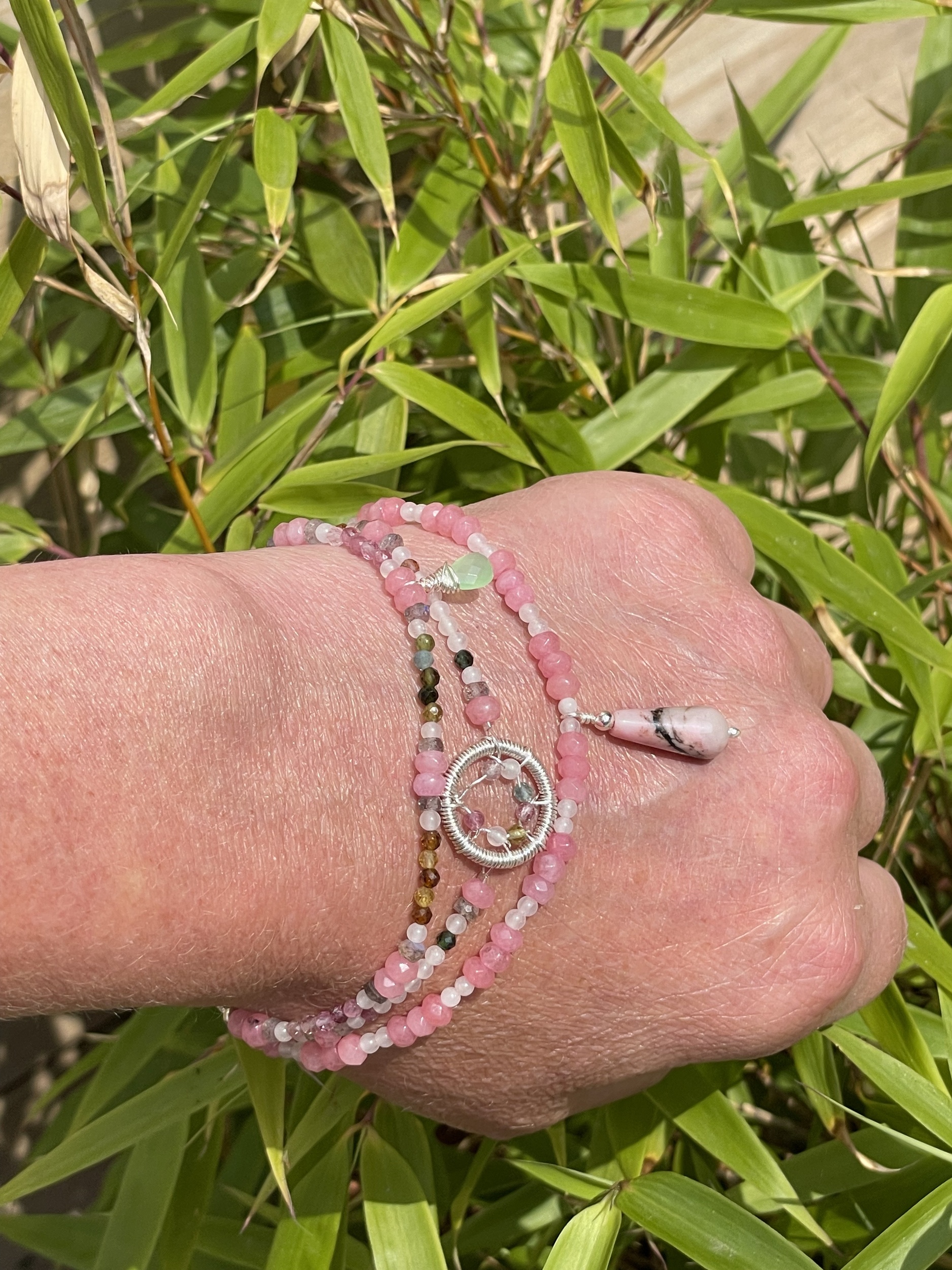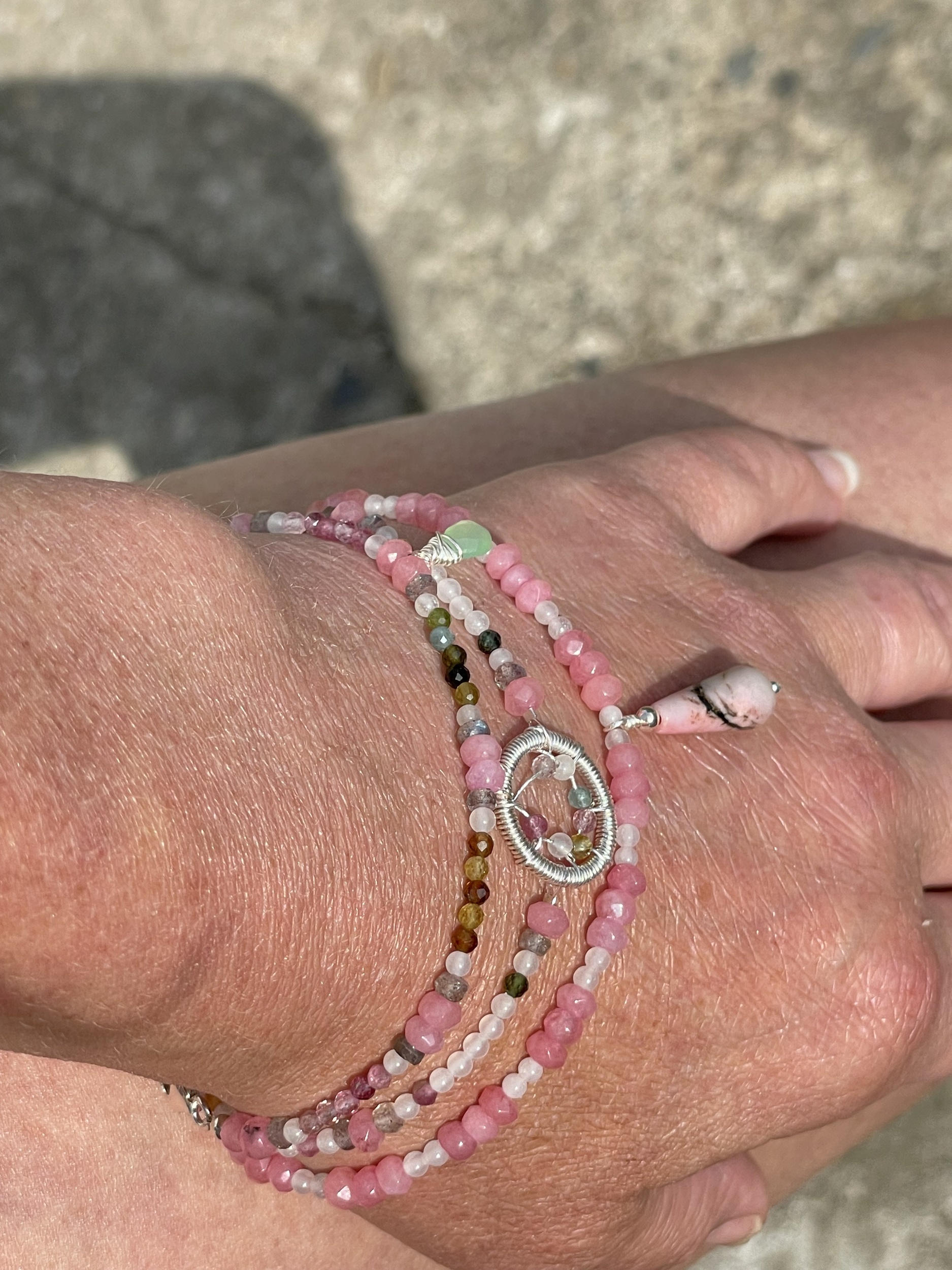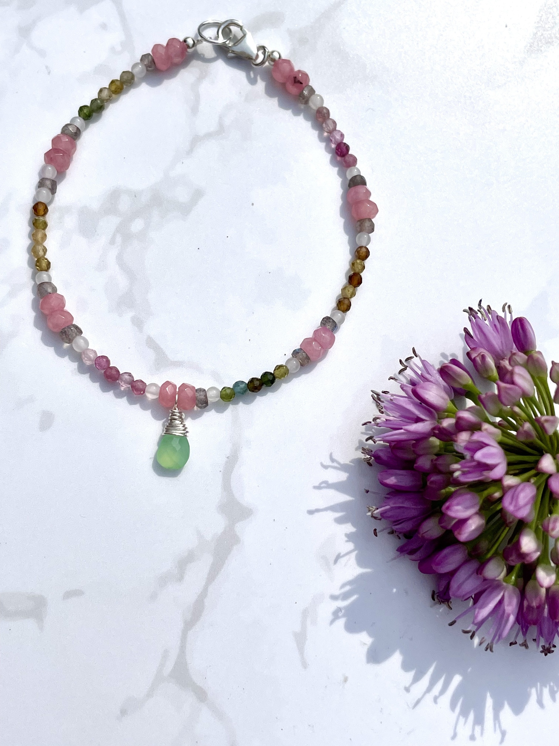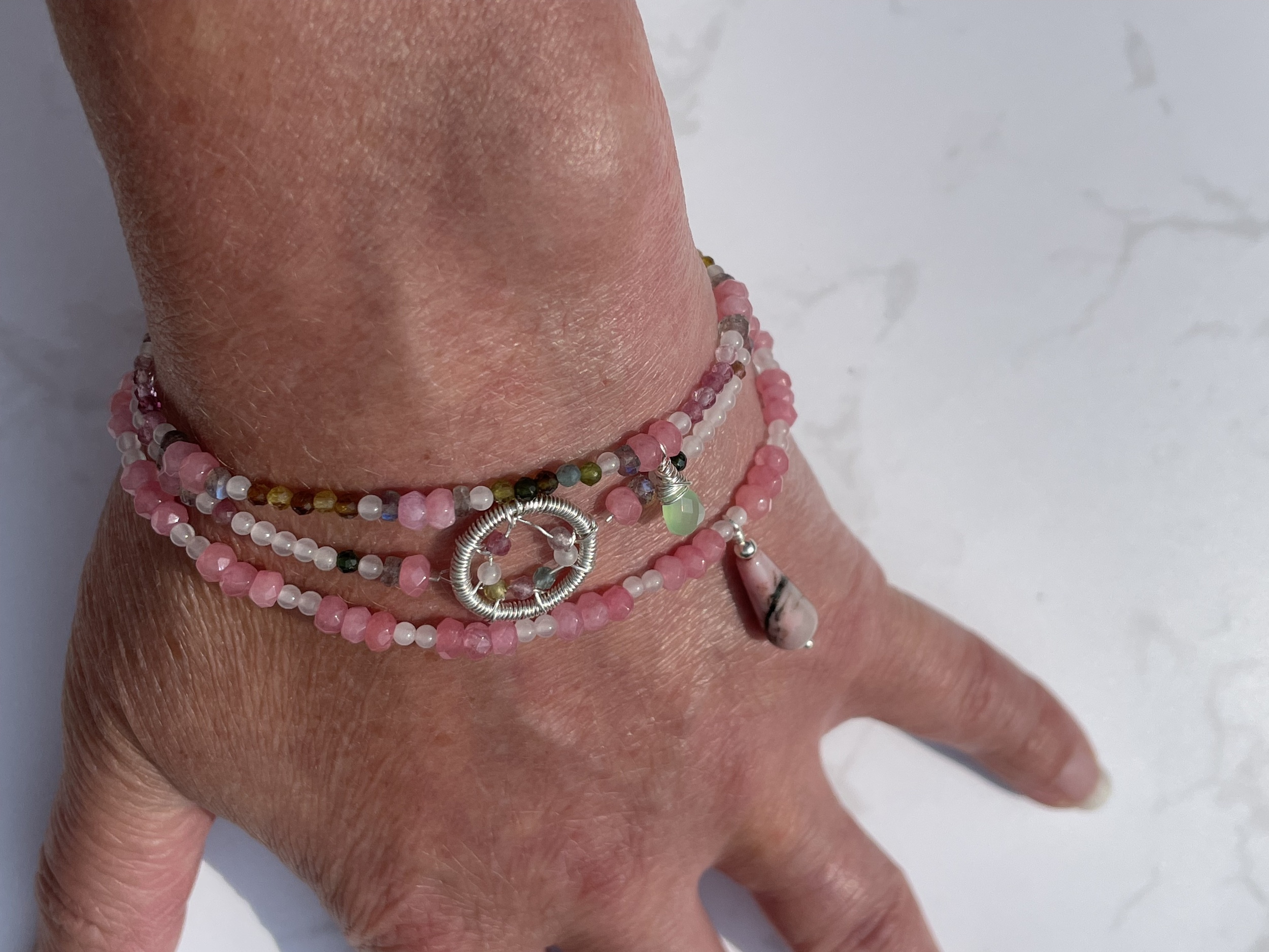 This Romantic Beaded Quartz, labradorite & 925 Sterling Silver, 'Theros-goddess of summer' Natural Gemstone Stacking Bracelet.