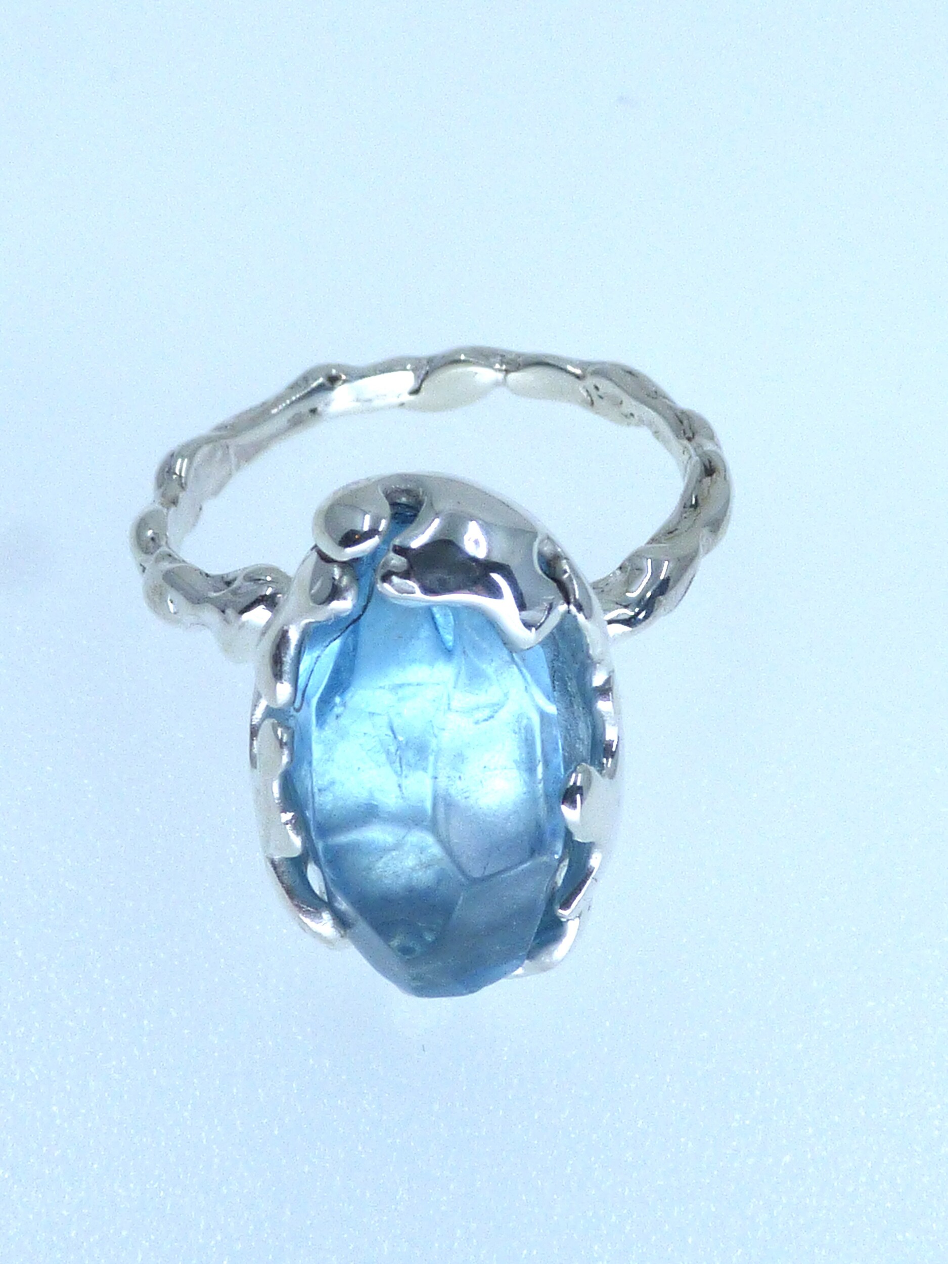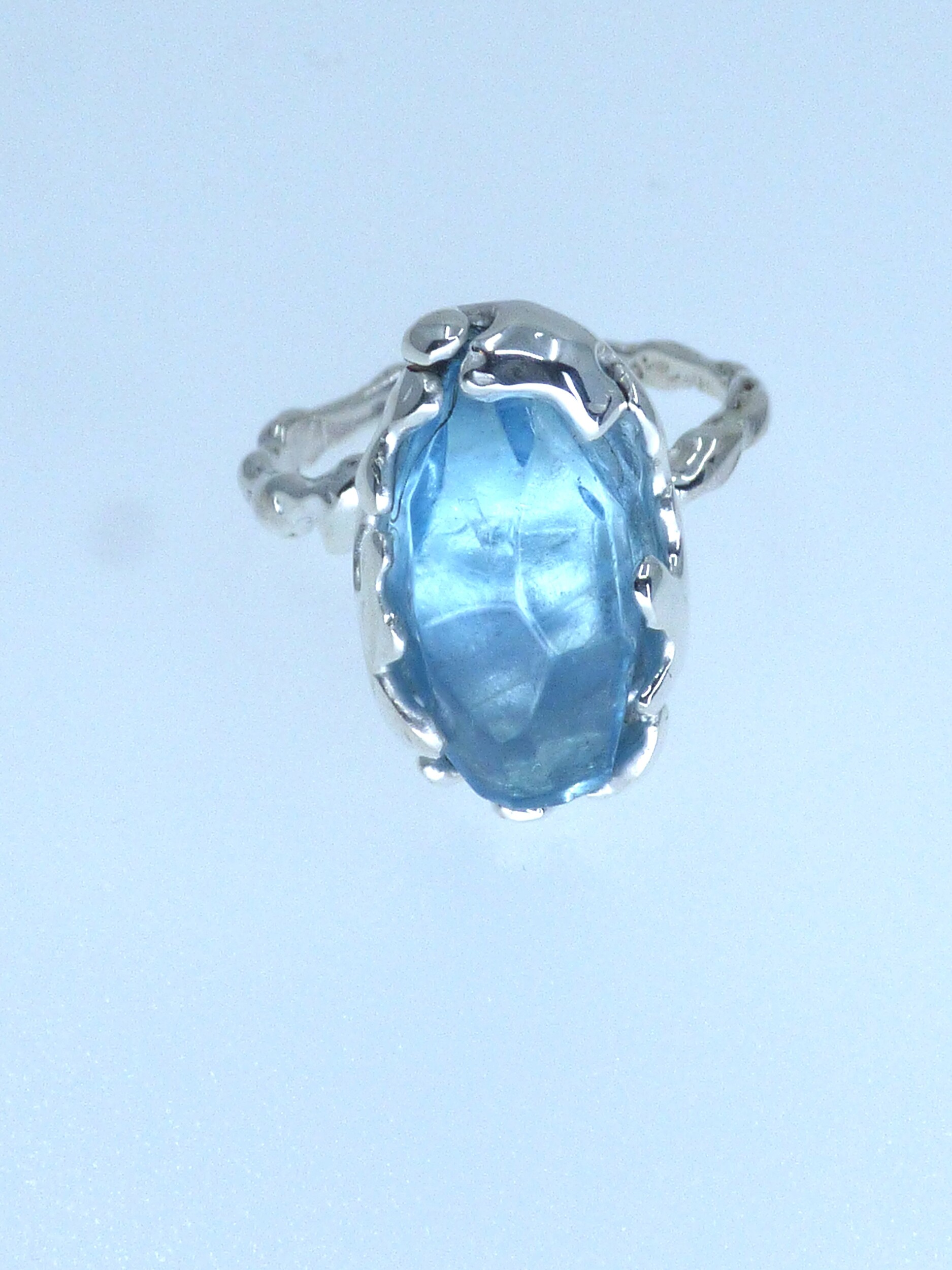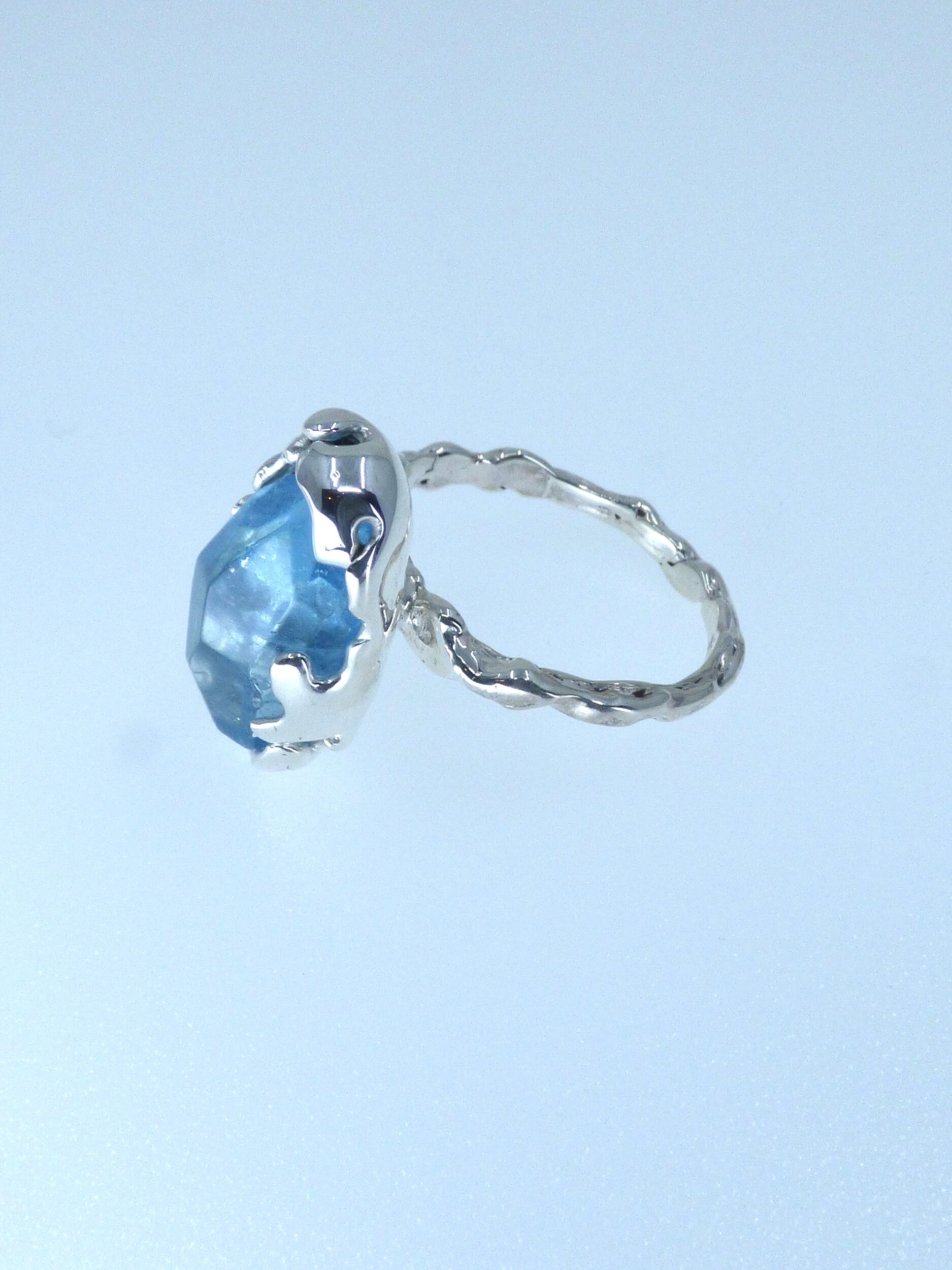 Whispering through the ocean with this unique aquamarine nugget ring. Set in a 925 sterling silver seaweed setting. This organically textured ring was originally crafted from wax giving it its molten look. It was then cast into silver using the ancient lost wax method, then hand finished and polished.