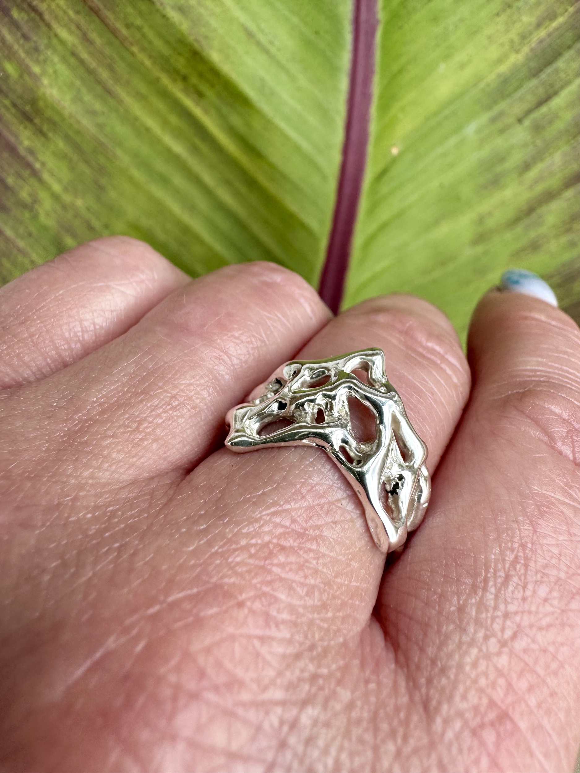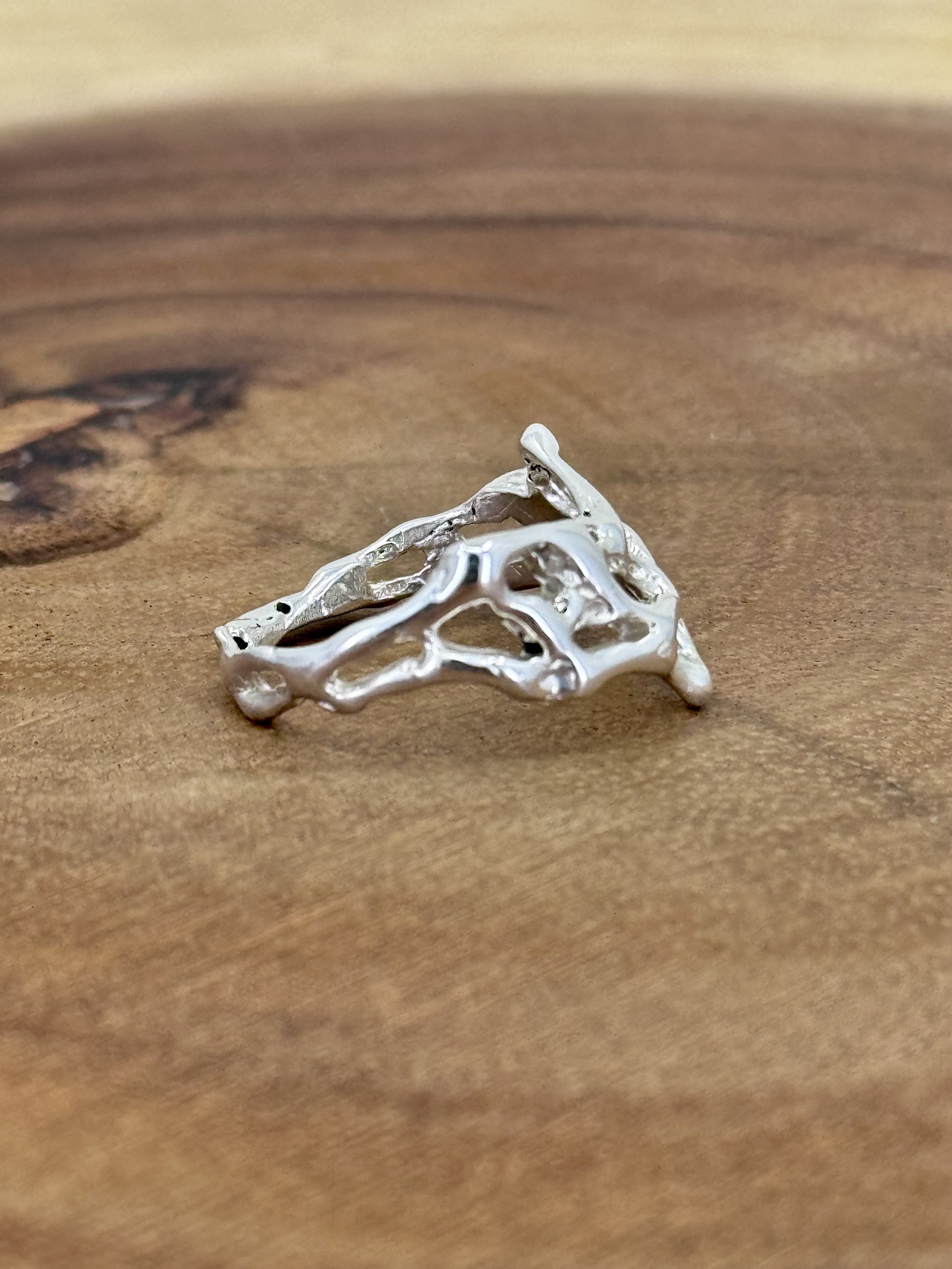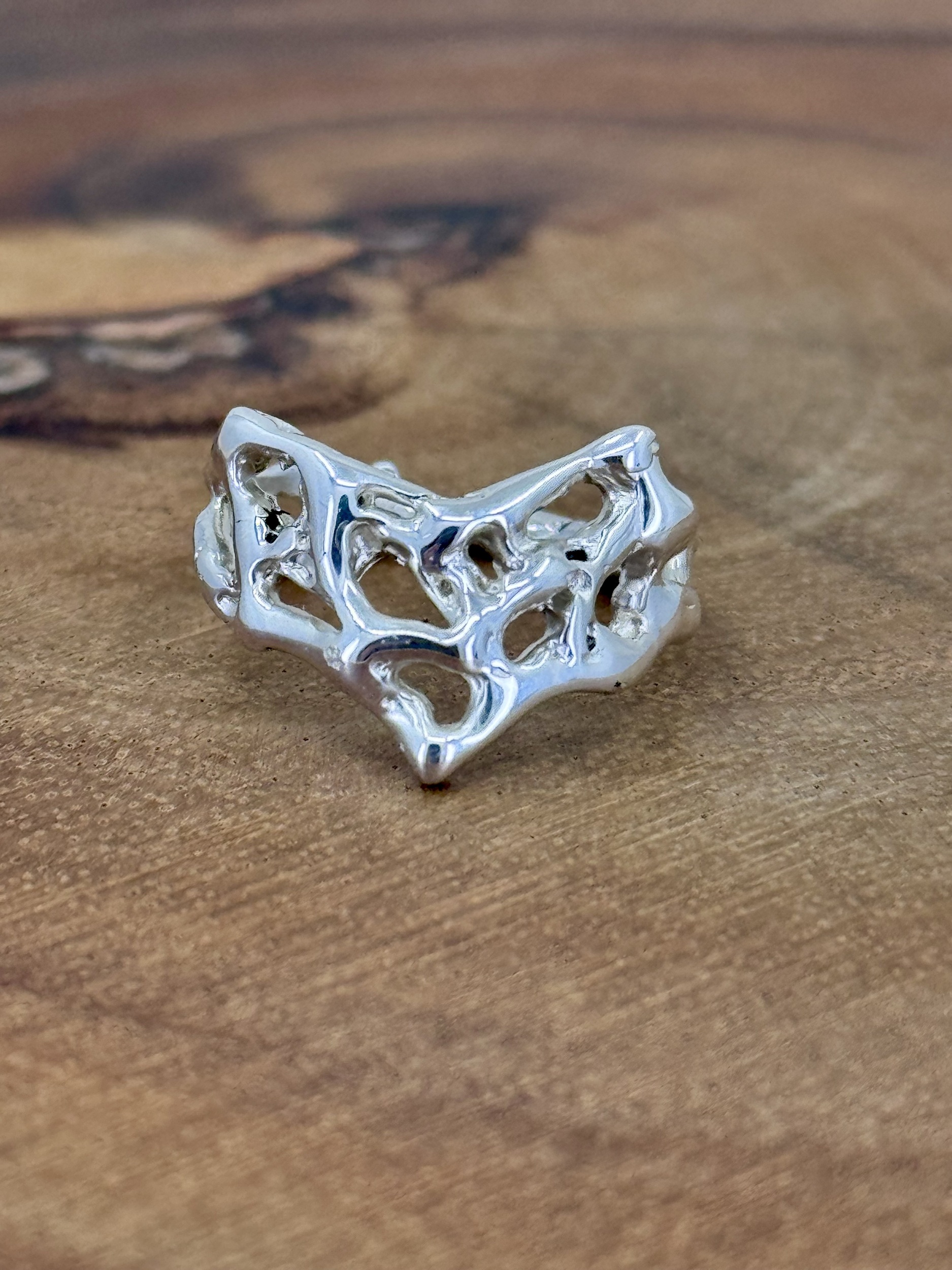 Molten lava 925 sterling silver wishbone ring , created in wax and cast using the lost wax method. This ring is available only in size N , if you have another size you would like your own unique molten lava ring.