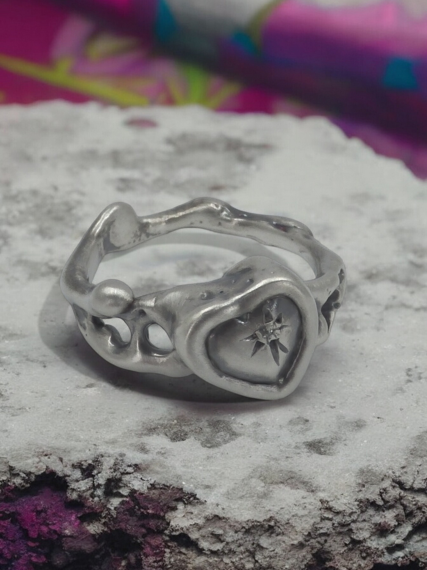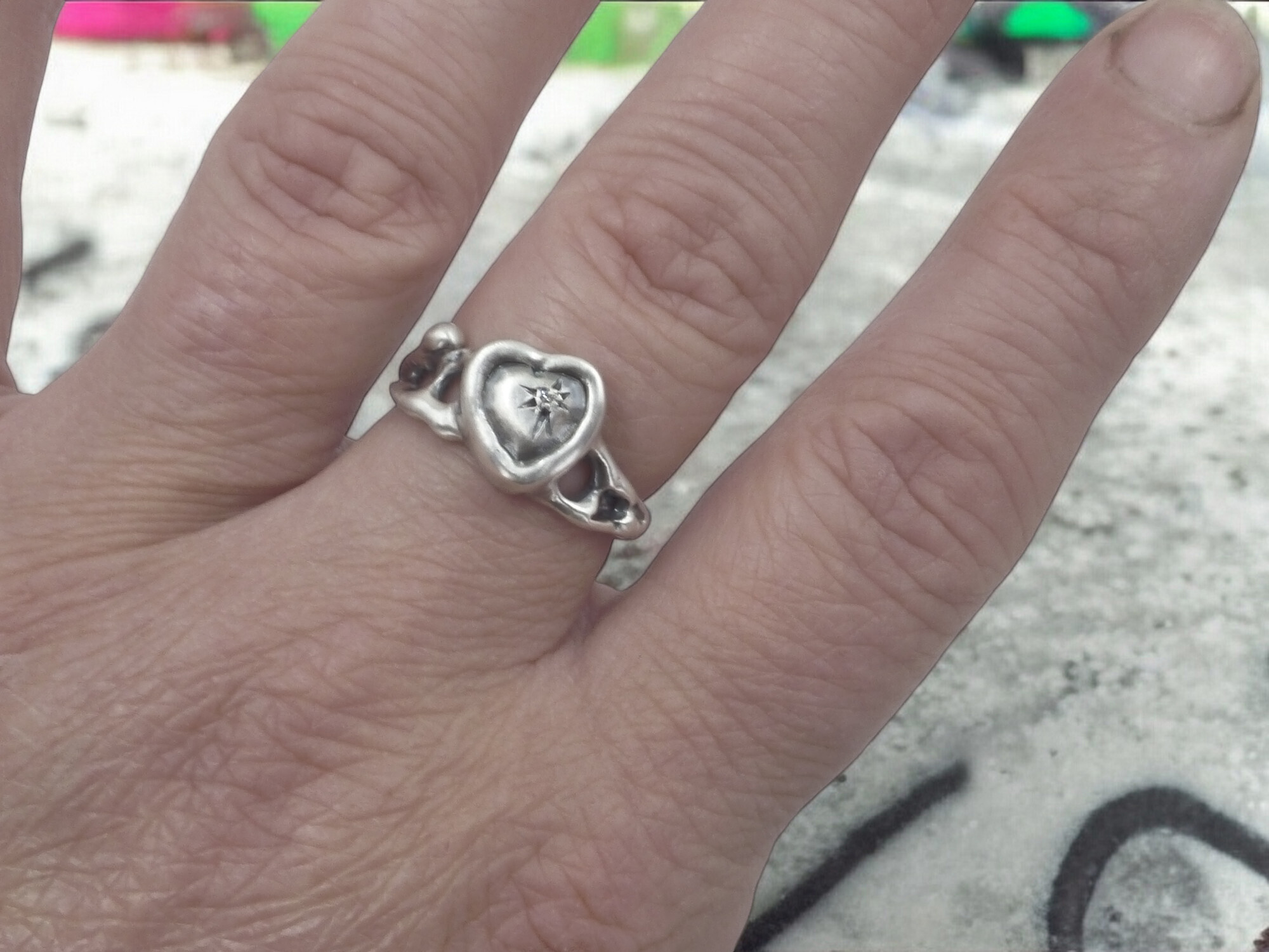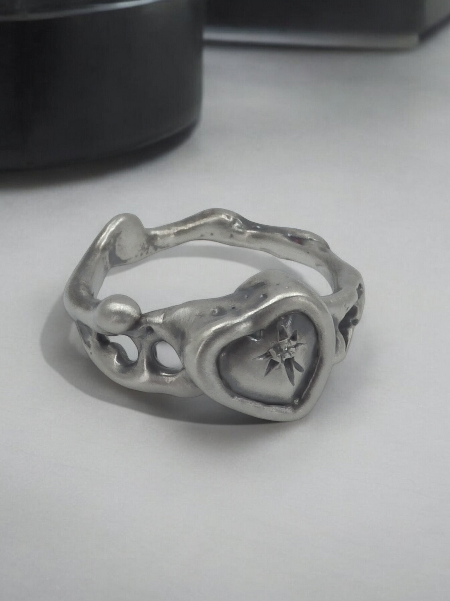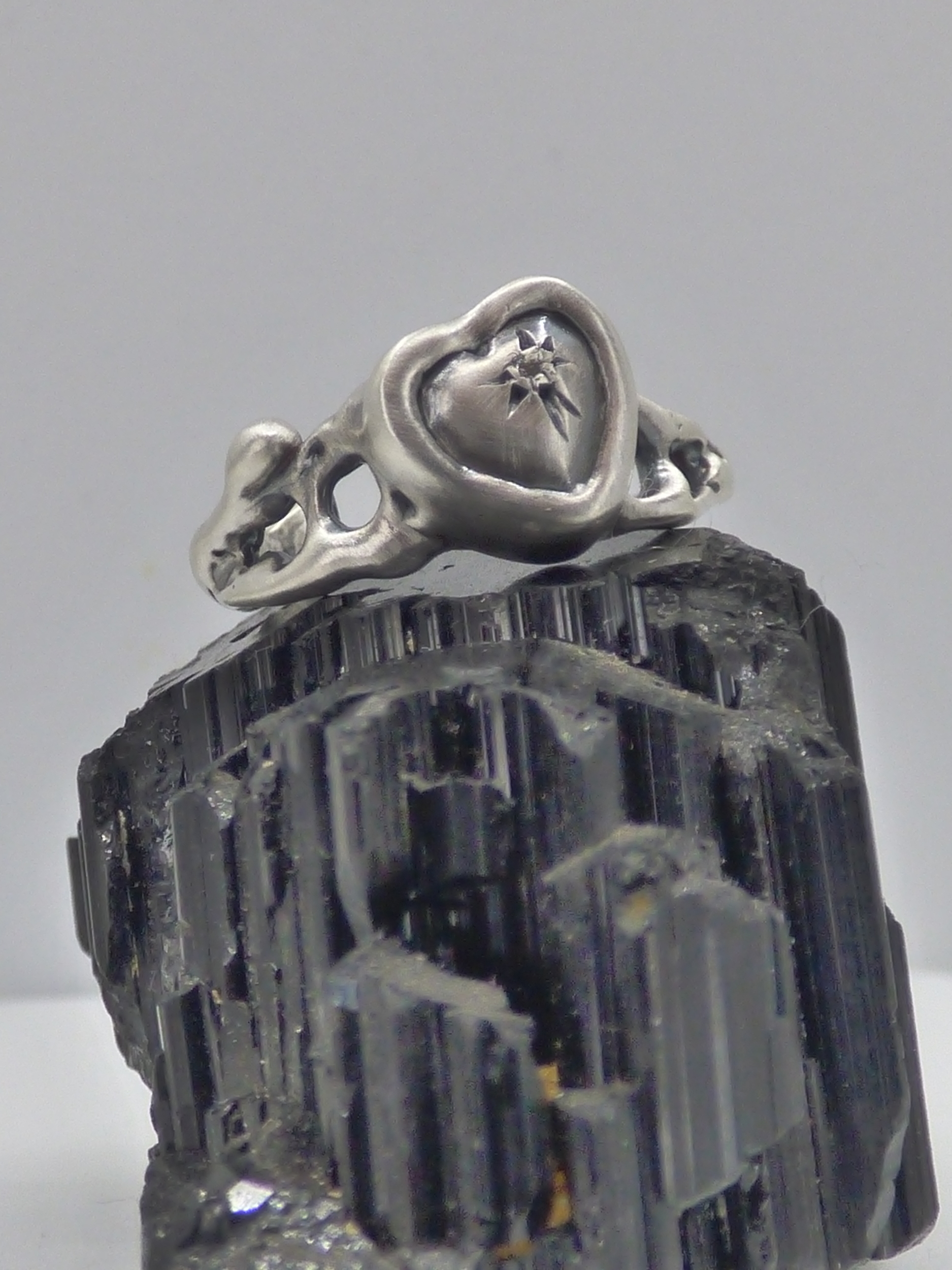 'Coeur Noir' Is available in Sterling Silver, 9K Yellow & Rose Gold, However there will be a less patina effect ( Darkening ) on the Gold. This ring is hand finished with a satin sheen.