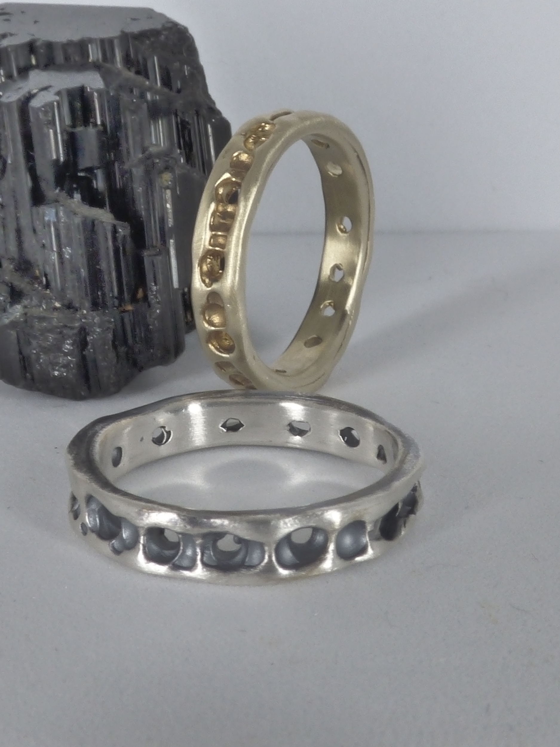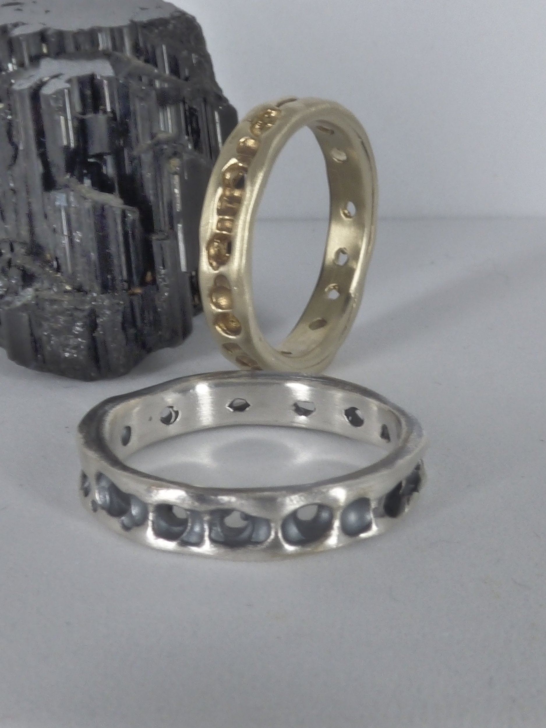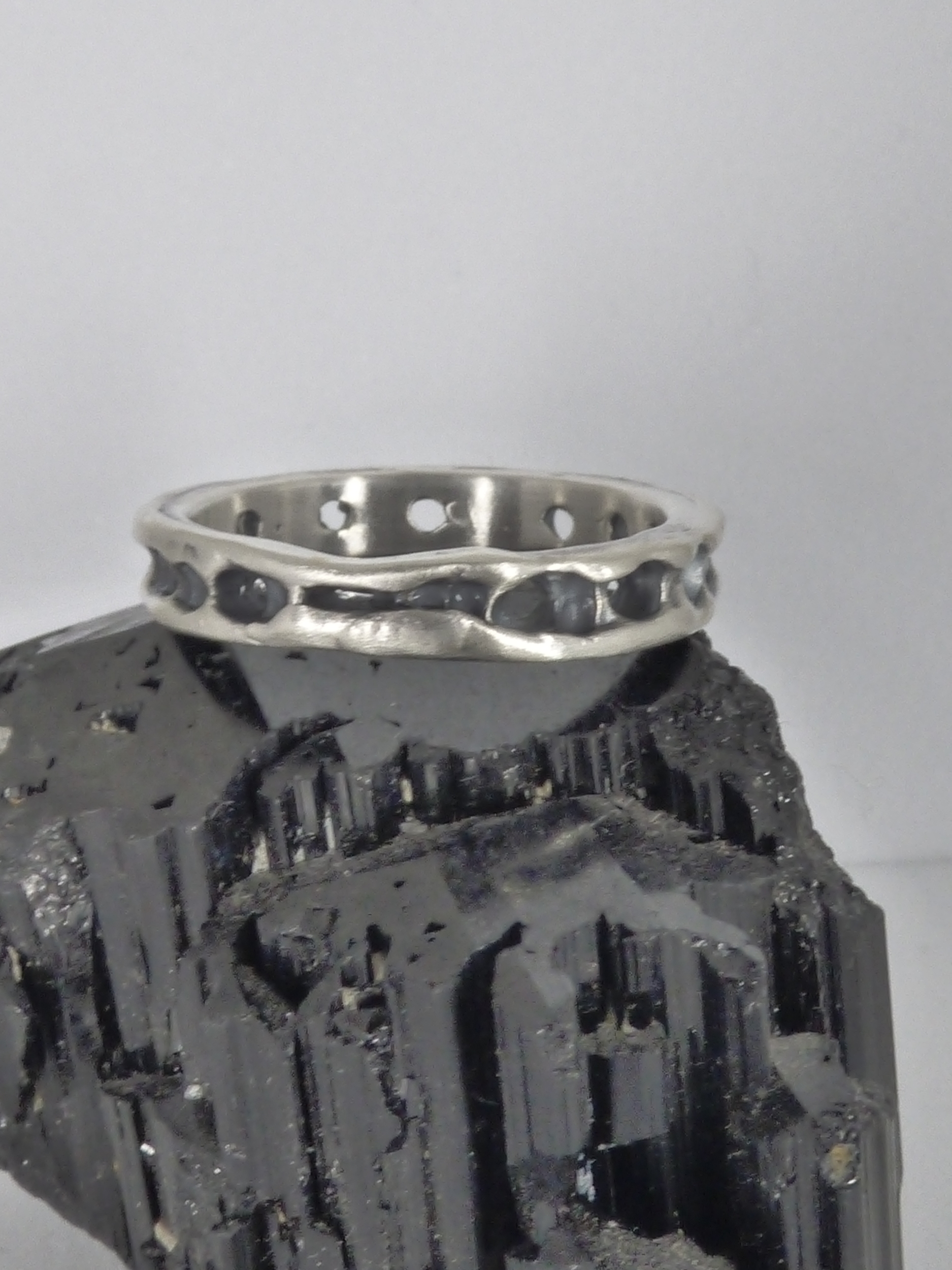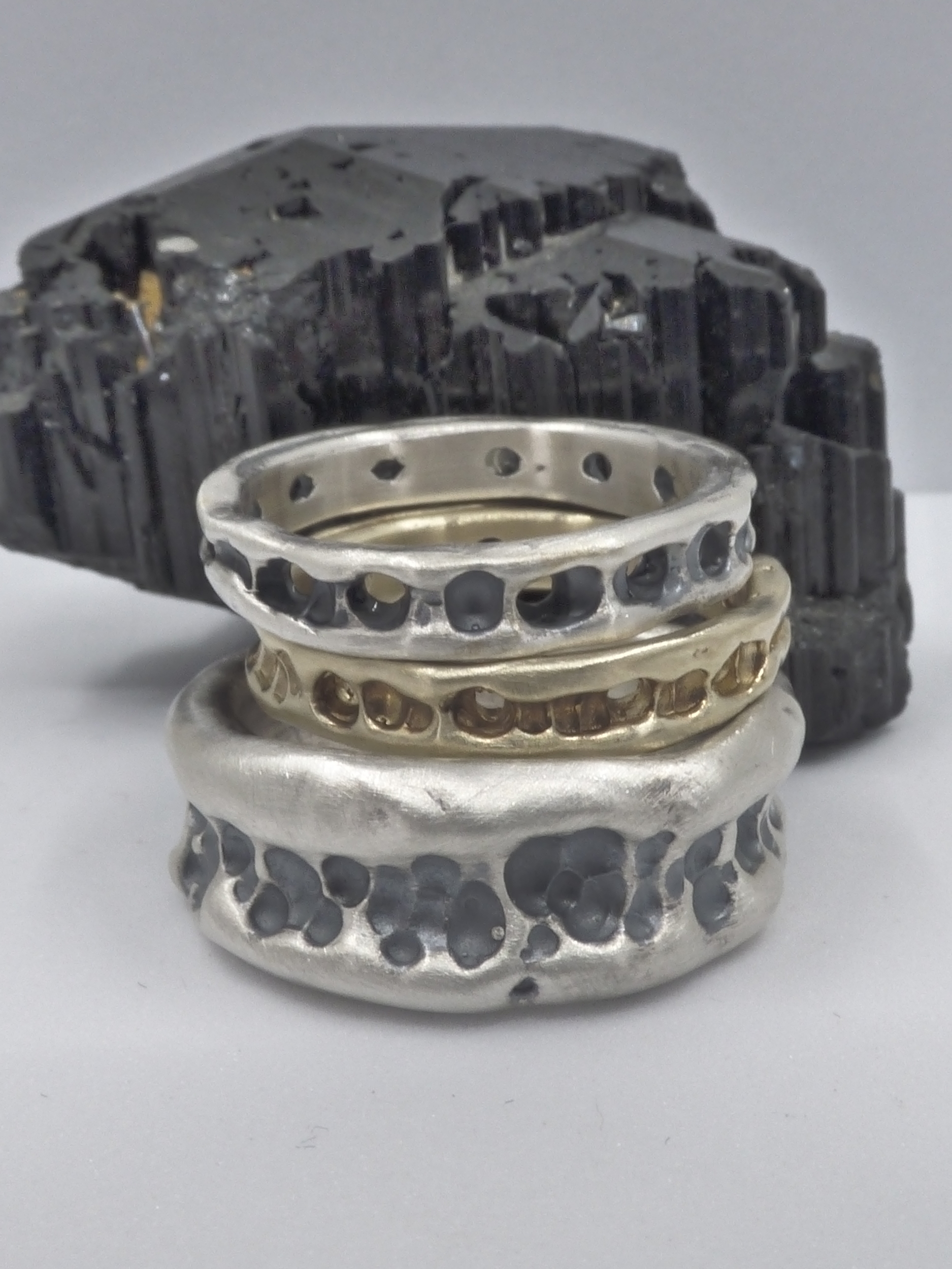 'De Fuego', is a unique organic textured unisex ring. It is available in Sterling Silver, 9K Yellow & Rose Gold, However there will be a less patina effect (Darkening) on the Gold. This ring can be hand finished with a satin sheen or Mirror polish & matt texture.