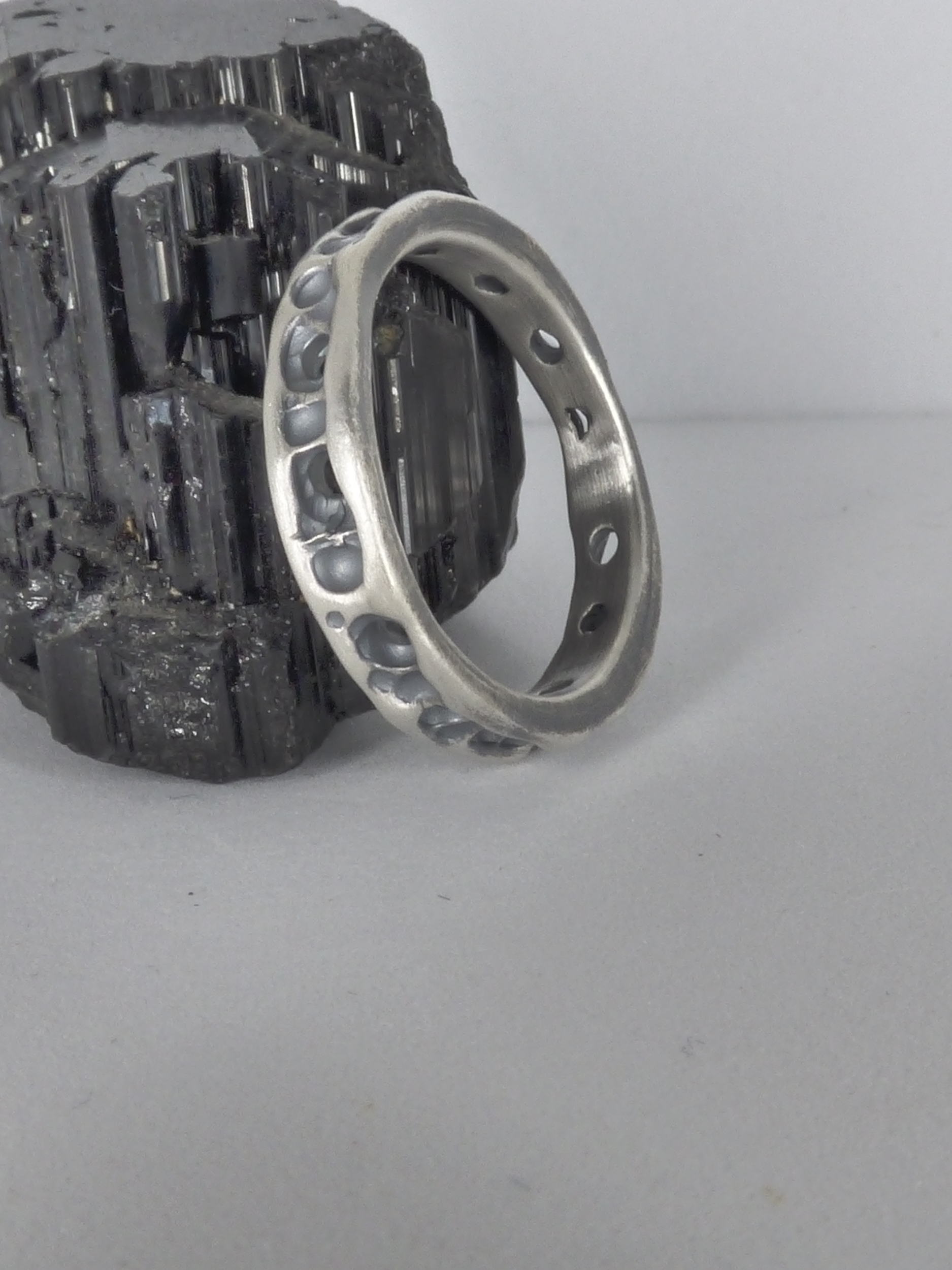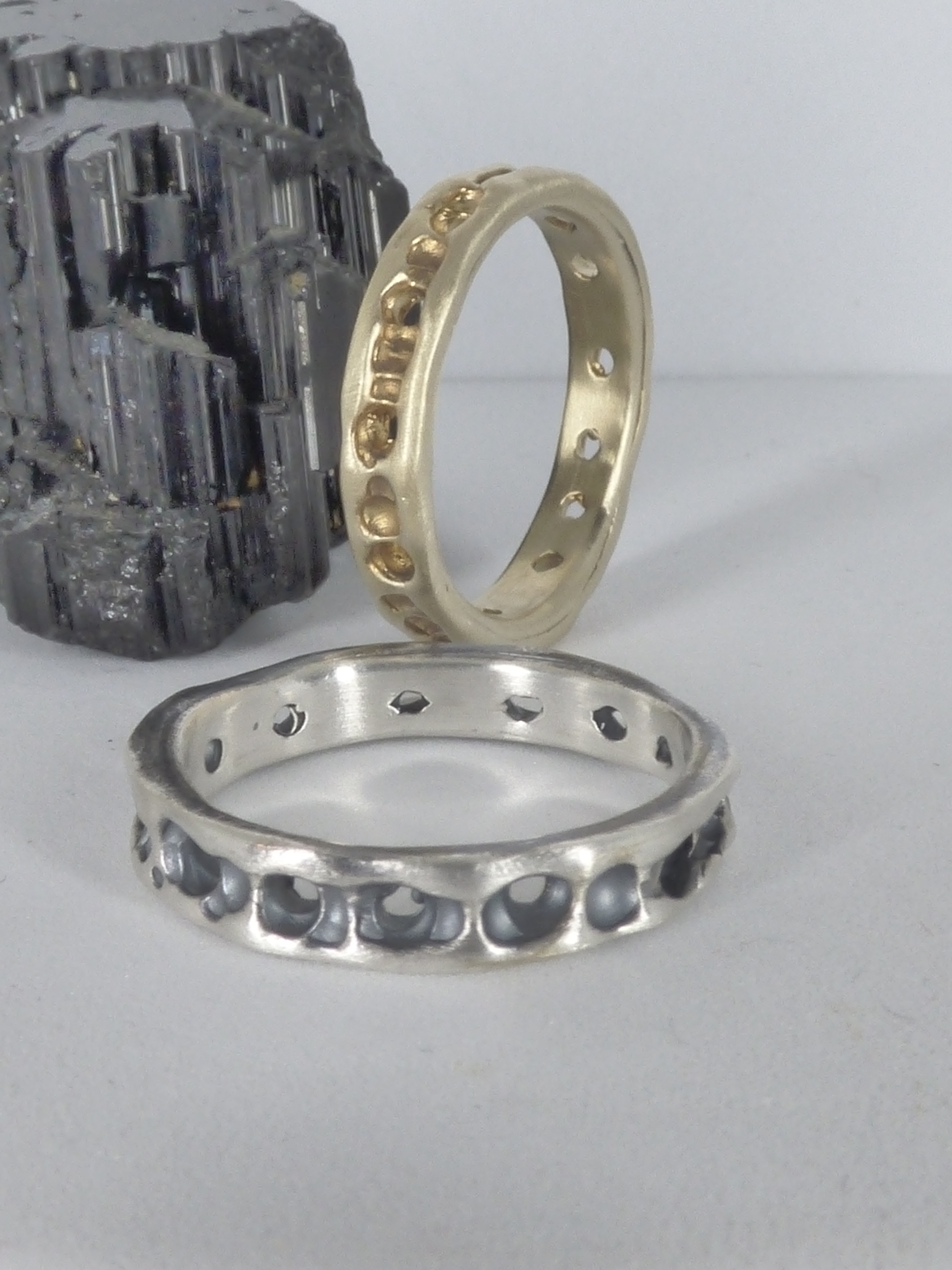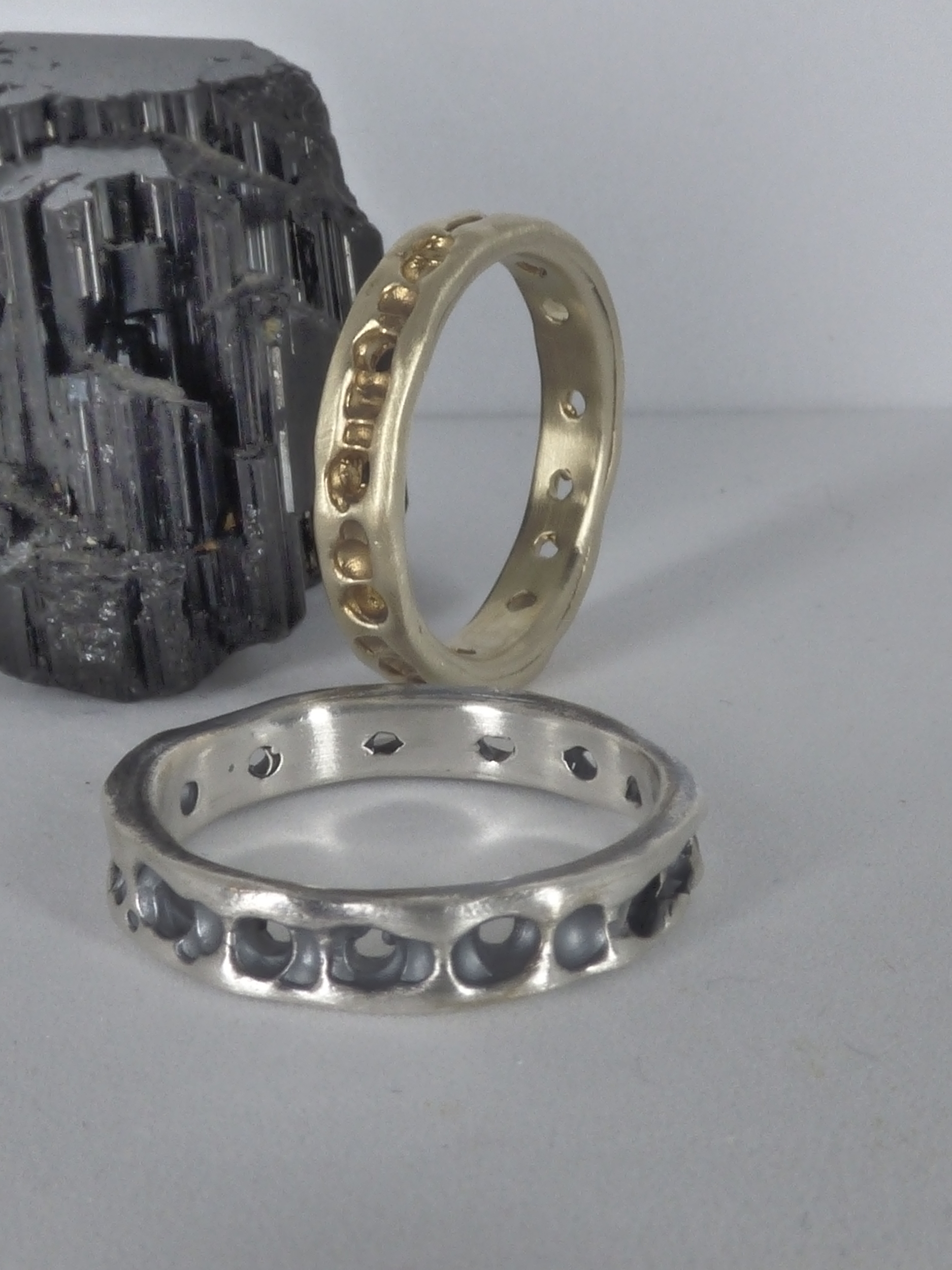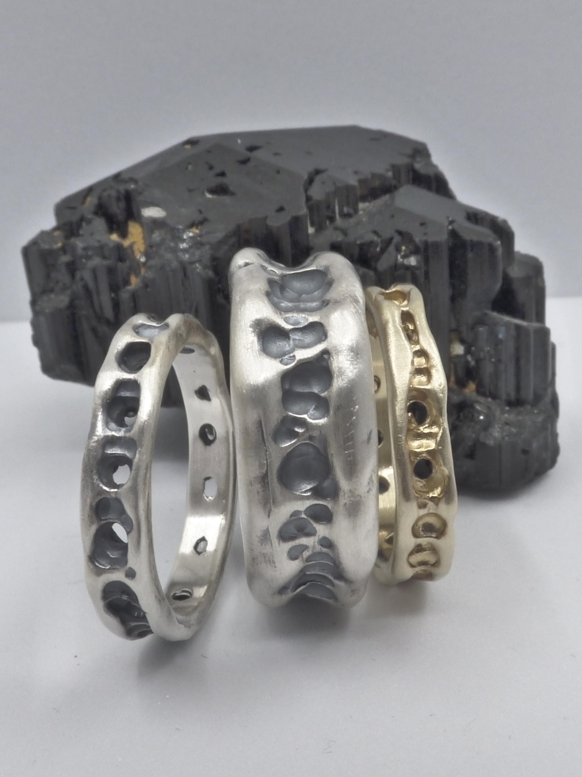 'De Fuego', is a unique organic textured unisex ring. It is available in Sterling Silver, 9K Yellow & Rose Gold, However there will be a less patina effect (Darkening) on the Gold. This ring can be hand finished with a satin sheen or Mirror polish & matt texture.
