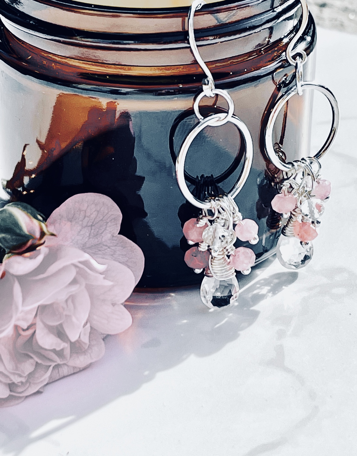 Quartz & 925 Sterling Silver Handmade Ear Wires, 'Theros-goddess of summer' Natural Gemstone Dangle Earrings.